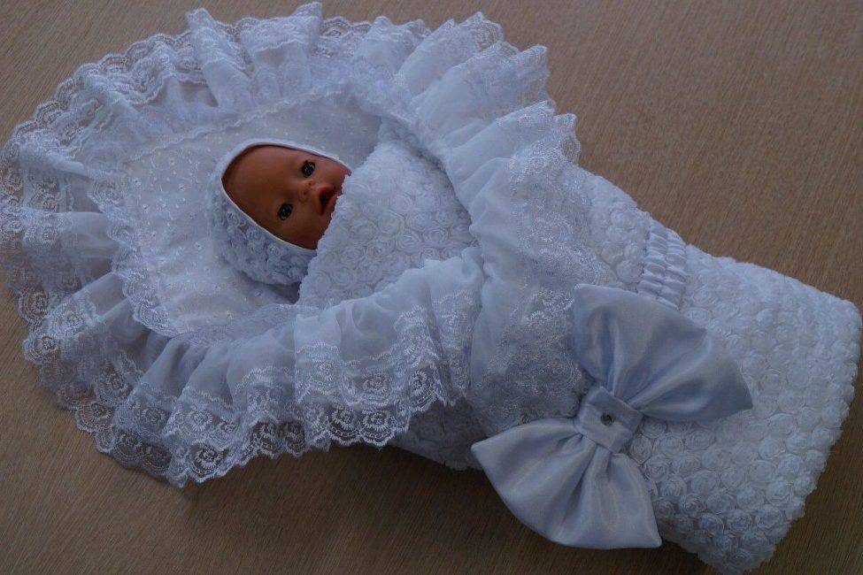 Конверт на выписку может быть практичным, с прицелом на дальнейшее применение, но чаще всего нарядный, с кружевами и бантами, чтобы подчеркнуть торжественность рождения ребенка. Выбор за родителями.