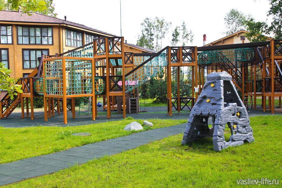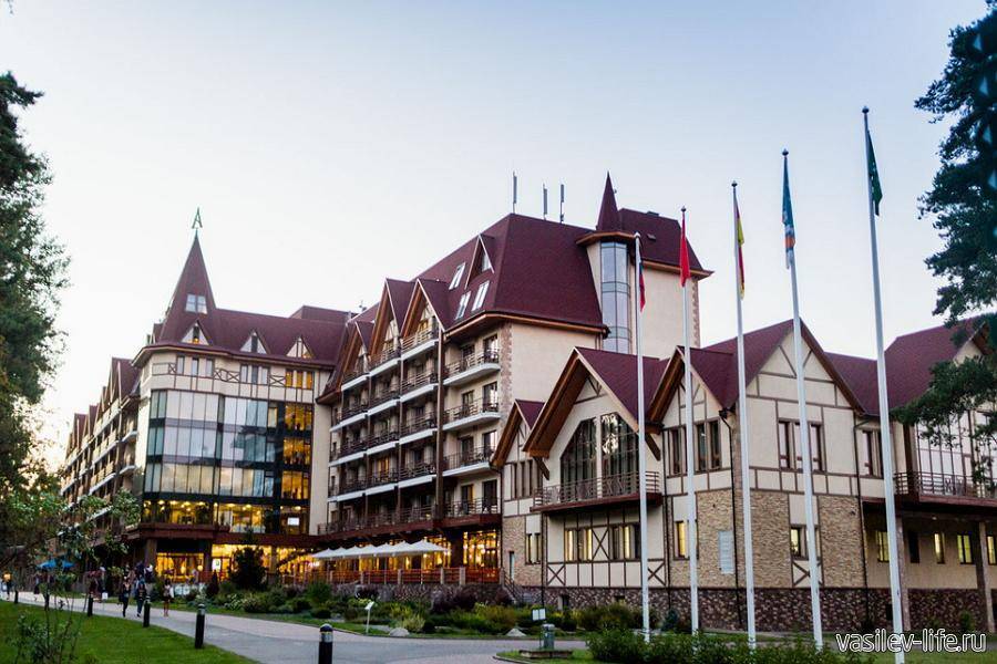 Отель в 2018 году официально признан лучшим в Московской области. На территории в более 120 га разместился отель 5*, различные спортивные и развлекательные объекты. Для детей есть отдельный бассейн, игровые площадки, анимация, разнообразные конкурсы и мастер-классы. Вариантов досуга более чем достаточно в любое время года. Зимой – лыжи, коньки и хоккей. Летом – пляжные утехи. Имеется тренажерный зал, оздоровительный центр. В наличии детское меню. Остановиться можно в номере категории «Стандарт», «Студия», «Улучшенная студия» или «VIP» или в комфортабельных коттеджах.