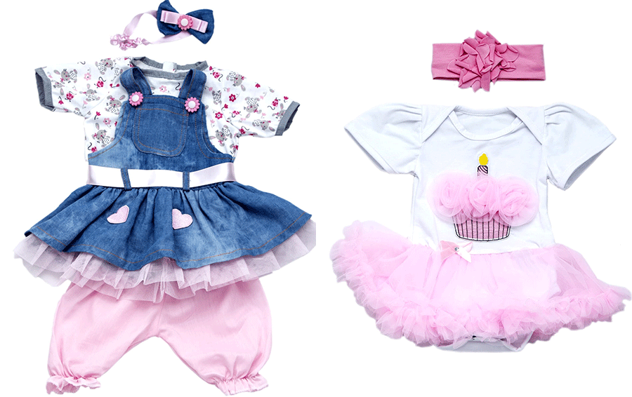 Другой великолепный образец того, какой должна быть качественная одежда для куклы — Reborn Kids Комплект Тортик (для кукол ростом 55 см): платье-боди, повязка на голову. Нежное платье с юбочкой-туту кажется одновременно озорным и нарядным — такой наряд поможет привить маленькой принцессе хороший вкус к одежде и украшениям (возможно, и маме захочется подобрать себе подобное платье для снимка в стиле family look).