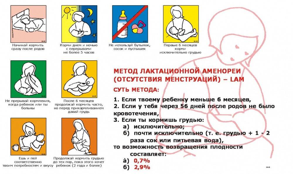 Без предосторожностей использование лактационной аменореи в качестве средства предохранения от беременности не гарантирует успеха. Чтобы метод сработал, нужно кормить грудничка через каждые 4 часа днем и 6- ночью