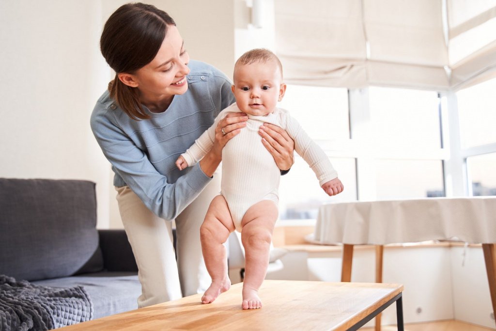 Главное — не заставлять, не ставить на ножки насильно, дать возможность ребеночку сделать это самостоятельно. Наше дело — мотивировать его действия, но в меру.