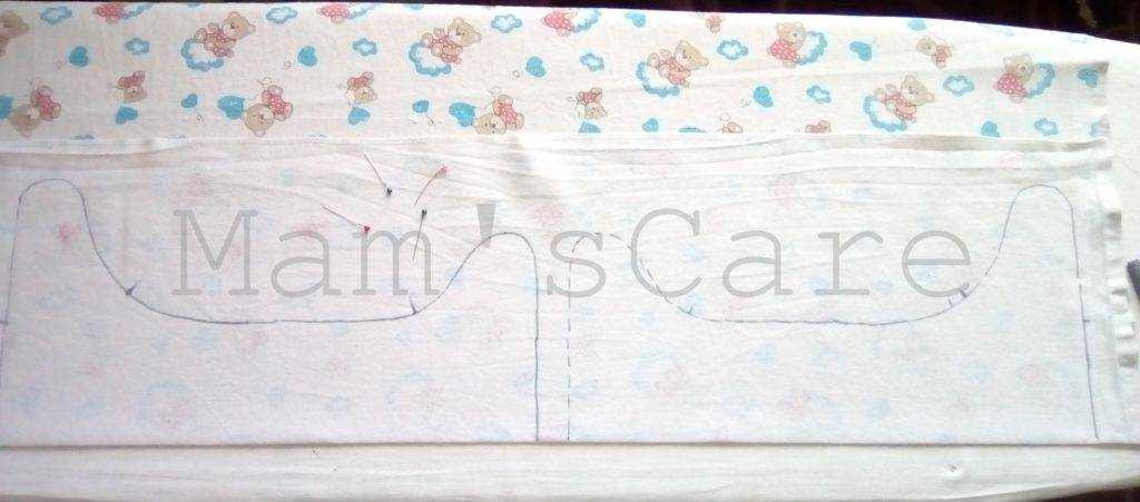2. Намечаем на бумажной выкройке места пришивания резиночек как на фото.