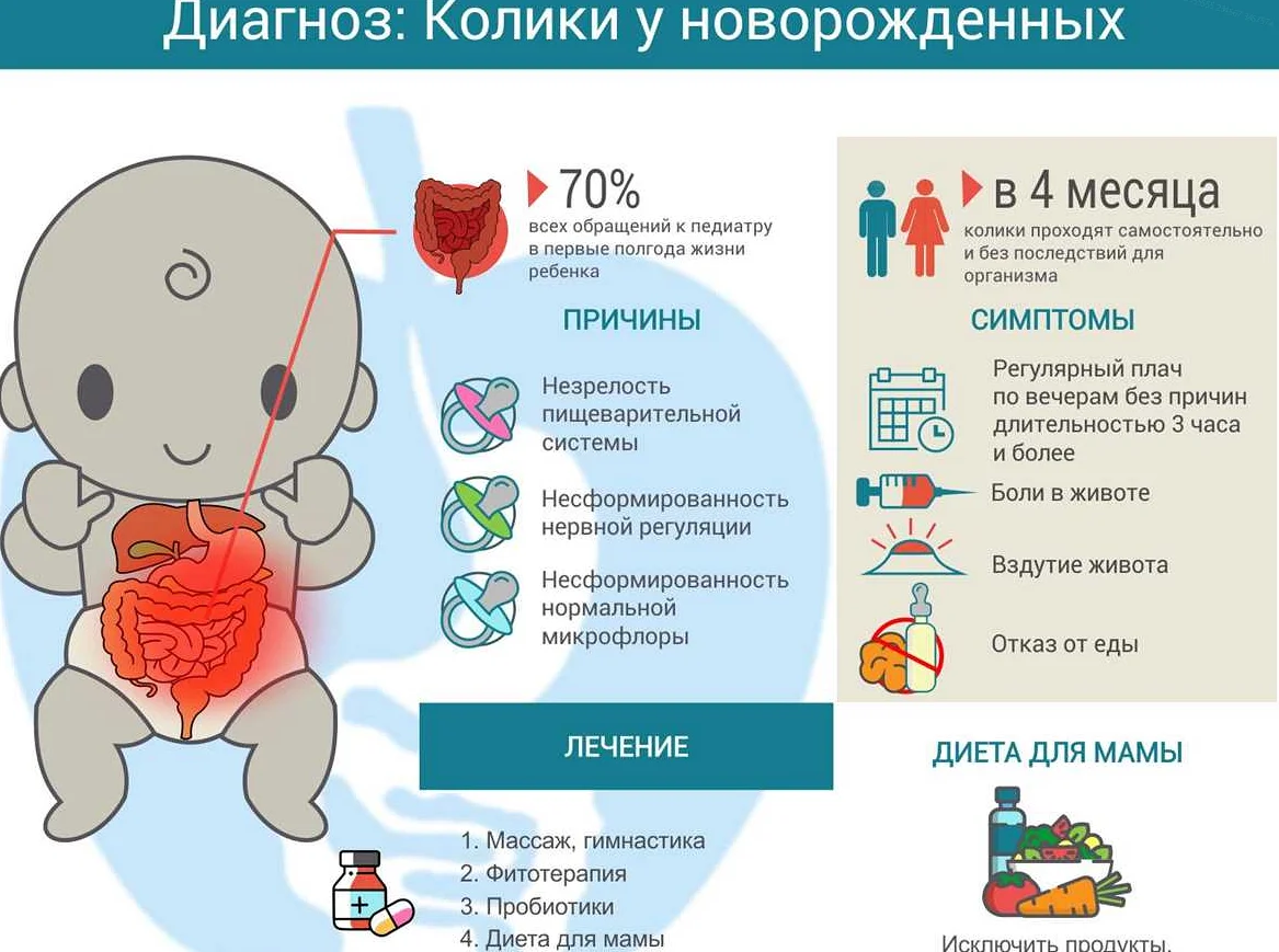 Колики. Смягчить этот процесс, связанный с заселением желудочно-кишечного тракта микрофлорой, можно, если не спешить с прикормами, а кормить малыша только грудным молоком до 4–6 месяцев, как сейчас рекомендует ВОЗ.