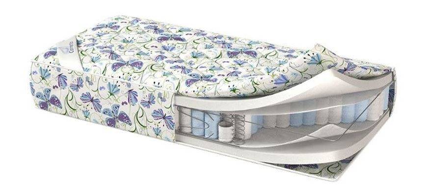 Стандартная модель детского матраса. Имеет высокий пружинистый эффект, что может пагубно сказаться на формировании костно-мышечного каркаса маленького ребенка. Изделие рекомендуется использовать детям школьного возраста.