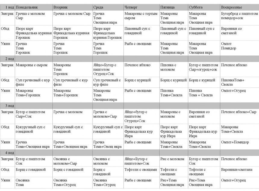 Повторы в меню на следующий день – недопустимы, иначе ранее любимое блюдо быстро надоест ребенку. Рекомендуется: