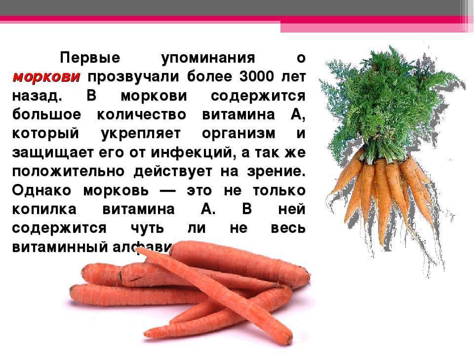 Благодаря практически идеальному набору микро- и макроэлементов морковь считается одним из самых полезных овощей, который можно употреблять в течение всего года. Кроме того, в моркови содержатся различные эфирные масла, которые придают корнеплоду неповторимый приятный вкус и аромат.
