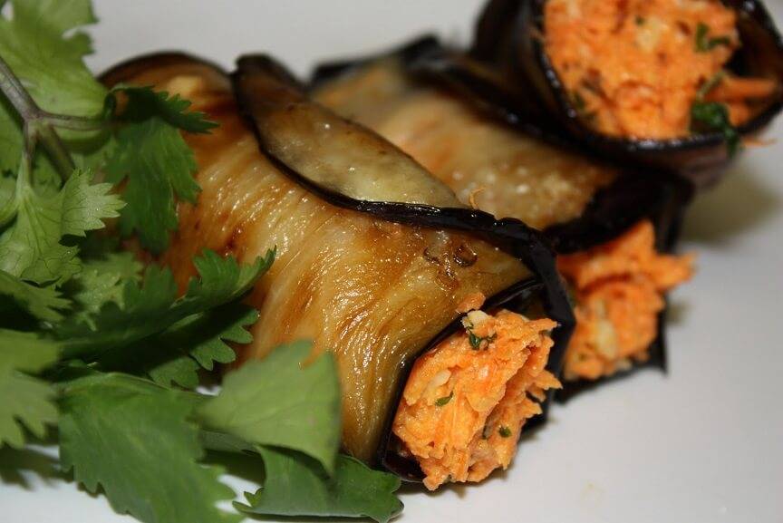 - начинайте с небольшой порции отварных, тушёных или запеченных баклажанов,