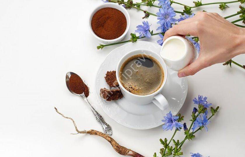 Те люди, которым по тем или иным причинам противопоказан кофе из-за содержания в нем кофеина, например, могут заменить его напитком из скромной травки под названием цикорий. Дело в том, что цикорий очень похож на кофе по своим вкусовым качествам, его воздействие на центральную нервную систему в корне отличается от кофе, он не возбуждает, а наоборот, успокаивает.