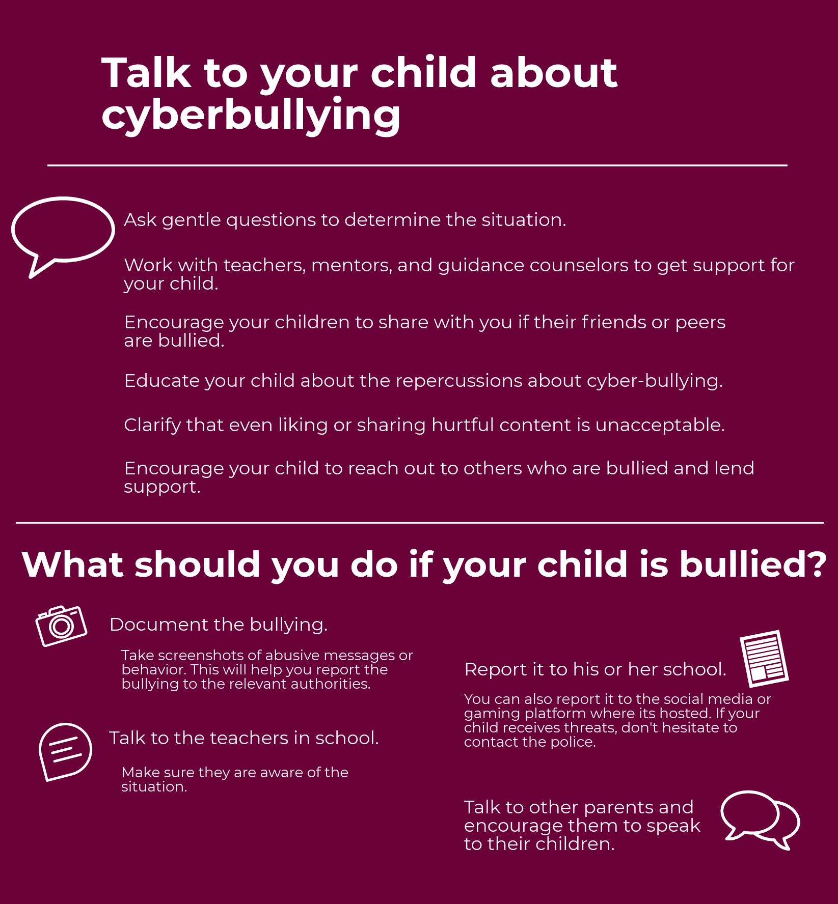 Проще всего предотвратить кибербуллинг или остановить его, если хорошо знать особенности поведения вашего ребенка и знать, на какие тревожные признаки следует обращать внимание. Поговорите с ребенком про кибербуллинг