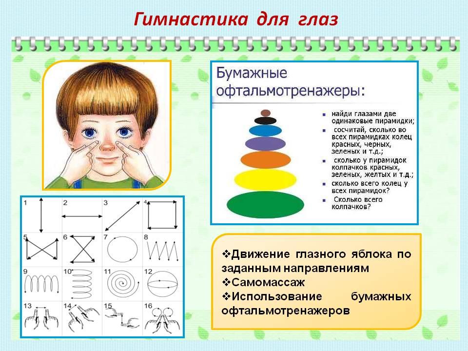 Очень важно, чтобы родители своевременно приучили своего ребёнка делать гимнастику для глаз хотя бы дважды в день, так как это поможет расслабить глазные мышцы и снять напряжение. Стоит помнить, что она способна не дать развиваться многим патологиям и скорректировать незначительные отклонения