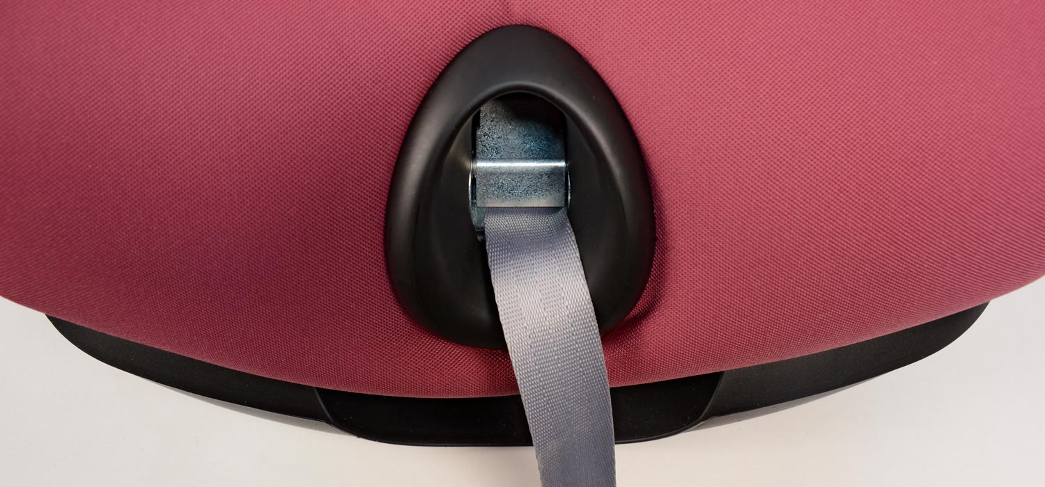 Затем берётся машинный ремень, складывается вдвое, проводится через красные направляющие, находящиеся на базе автокресла, и защёлкивается на замочек. Родителю следует проверить степень натяжения стандартного ремешка.