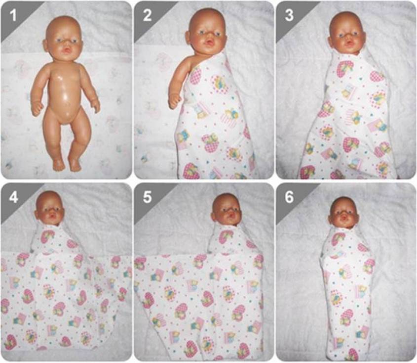 - выберите способ пеленания. Тугое – ребенок плотно завернут в ткань, не имеет возможности двигать руками и ногами. Свободное – фиксируются только ножки, ручки остаются на свободе. Широкое – ручки и ножки двигаются свободно.