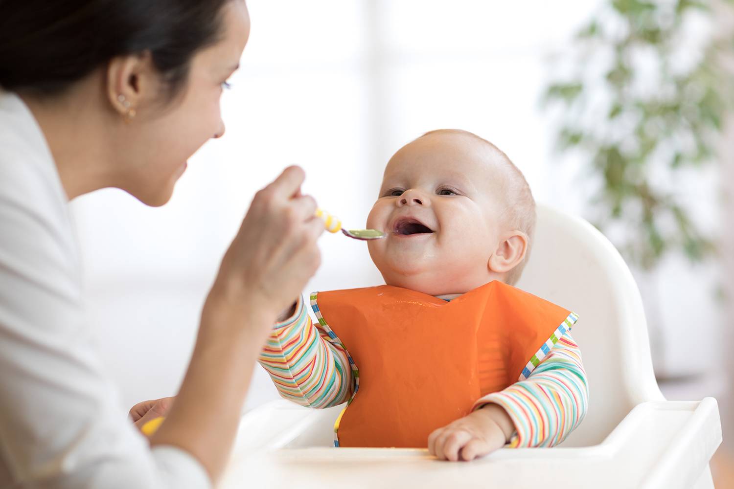 Постепенно продукты будут замещать грудное вскармливание, но оно может продолжаться в течение всего первого года жизни или дольше — пока ребенок сам не откажется от груди