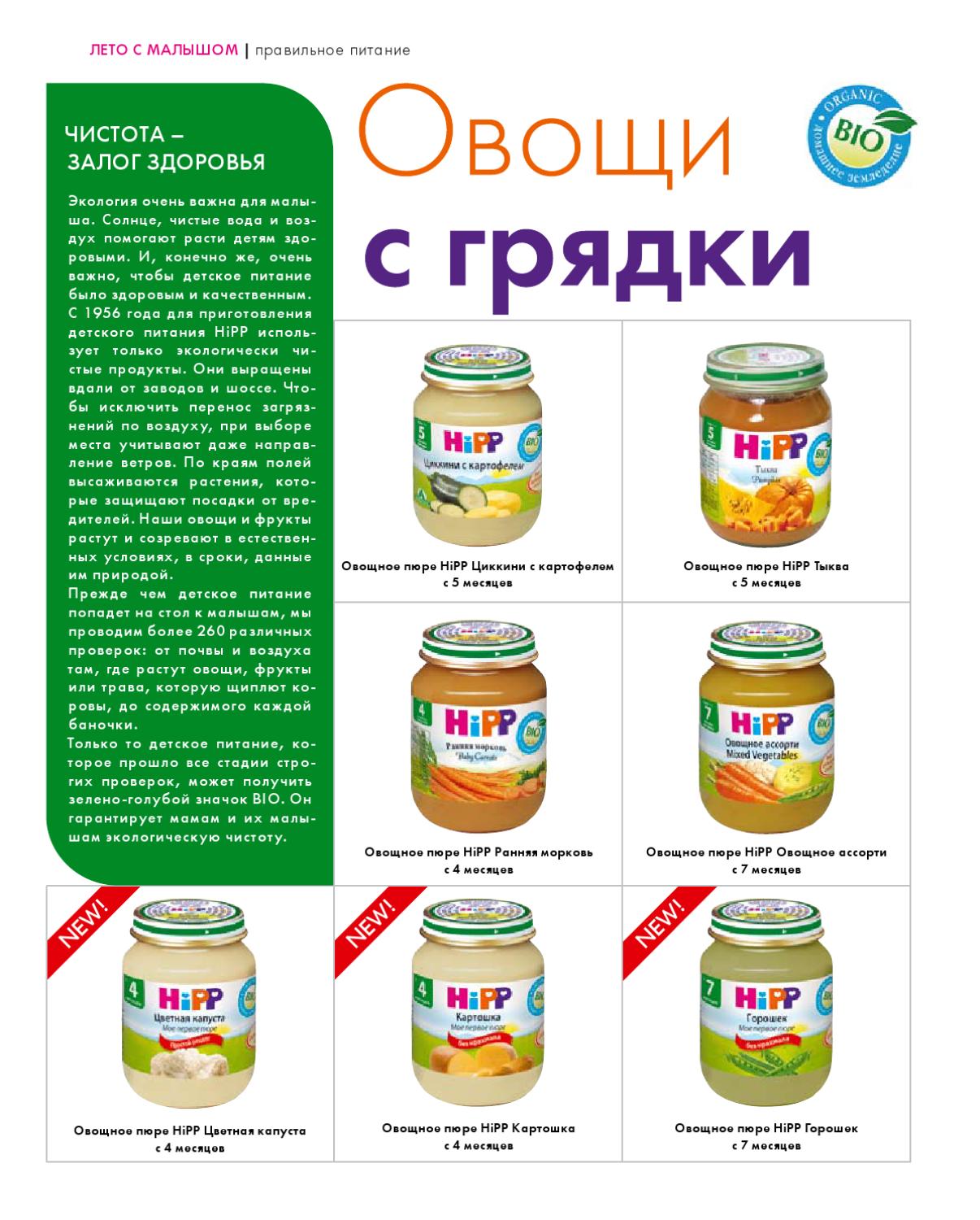 - «Хипп». Питание изготавливается только из свежих и качественных продуктов. Редко приводит к аллергии и нарушению стула. Для малышей есть прикорм из цветной капусты, моркови, картофеля, кабачка, пастернака или брокколи.
