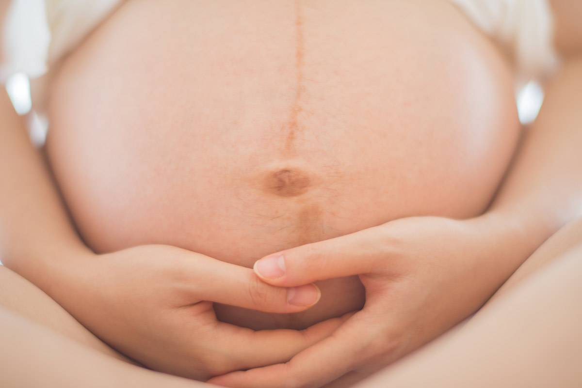 Не менее часто темнеет кожа в местах регулярного контакта с одеждой: на внутренней стороне бедер и подмышками. Практически у всех беременных темная вертикальная полоска по центру округлившегося живота делит его на две равные части. Область декольте, спина и кисти рук также являются «любимыми» местами дислокации пигментных пятен при беременности (фото):