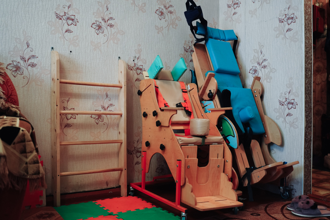 Вертикализатор и специальный стул, которые Татьяна Ивановна получила от ФСС / Фотография Елены Елизаровой для Фонда Ройзмана