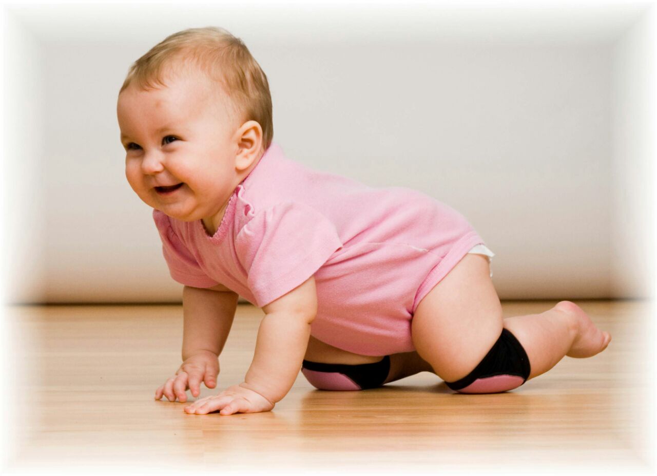 Указанный выше комплекс упражнений от 4 до 6 месяцев поможет малышу встать на четвереньки и совершать попытки поползти. Некоторые детки в 7 месяцев уже хорошо и быстро ползают, а другим нужна тренеровка.