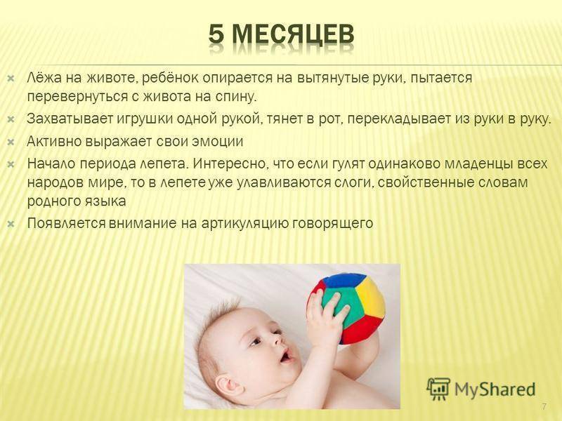В 3–5 месяцев малыш начинает первые попытки повернуться на бок, в 4–5 он пробует перевернуться на живот, а к полугоду — уже и с живота на спинку. Однако эти рамки являются усреднёнными показателями, так как освоение навыков происходит, по словам известного педиатра Е.О. Комаровского, по собственной индивидуальной программе, которая зависит от уровня развития мышц спины, живота, боковых косых мышц и связок.