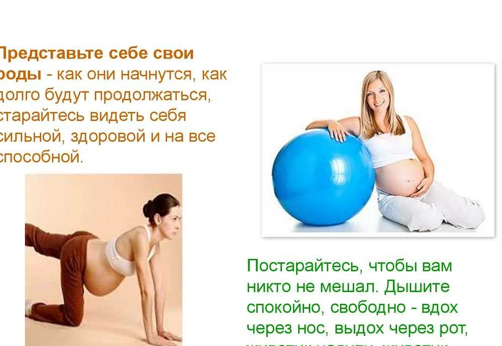Глубоко дыша таким образом, нужно обращать внимание на глубину, частоту дыхания и общее самочувствие. Такое упражнение стоит пробовать в течение минуты в разных положениях – лежа, сидя, стоя, ведь поза в родах не является статичной