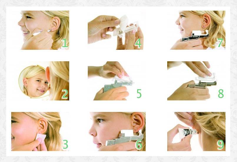 Выполнение прокола мочки иглой – классика. Для прокола требуется совершить такую последовательность действий: