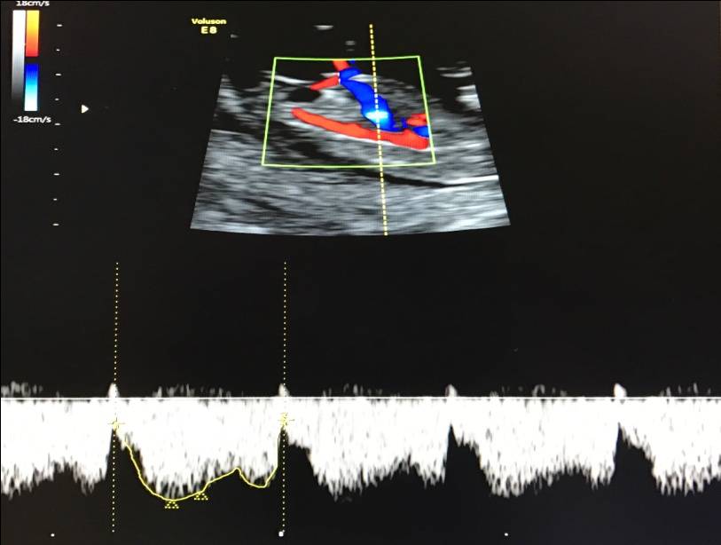 – кровоток в венозном протоке – это маленький сосуд в печени плода. При обратном (ретроградном) токе крови в данном сосуде можно предположить, что у плода хромосомный синдром, либо врожденный порок сердца.