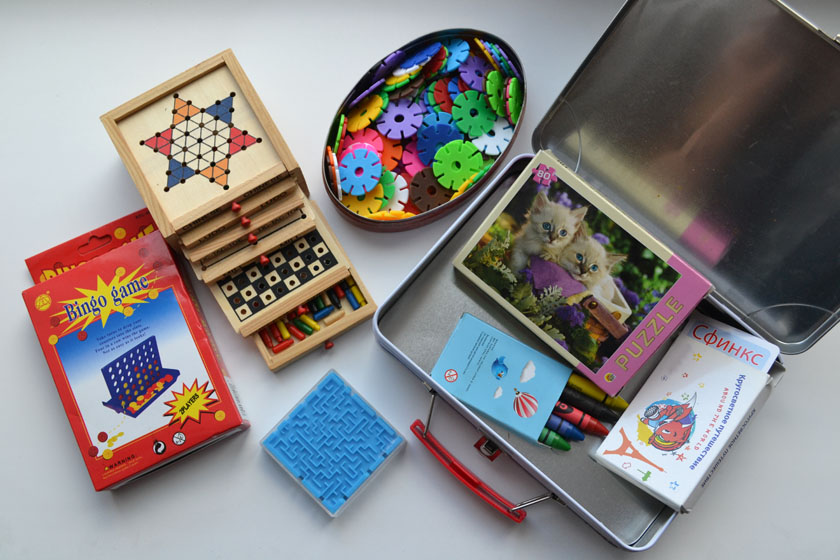 - Поиграйте в головоломки и настольные игры – компактные магнитные шахматы или шашки, игры с карточками, пятнашки помогут занять голову и скоротать время.