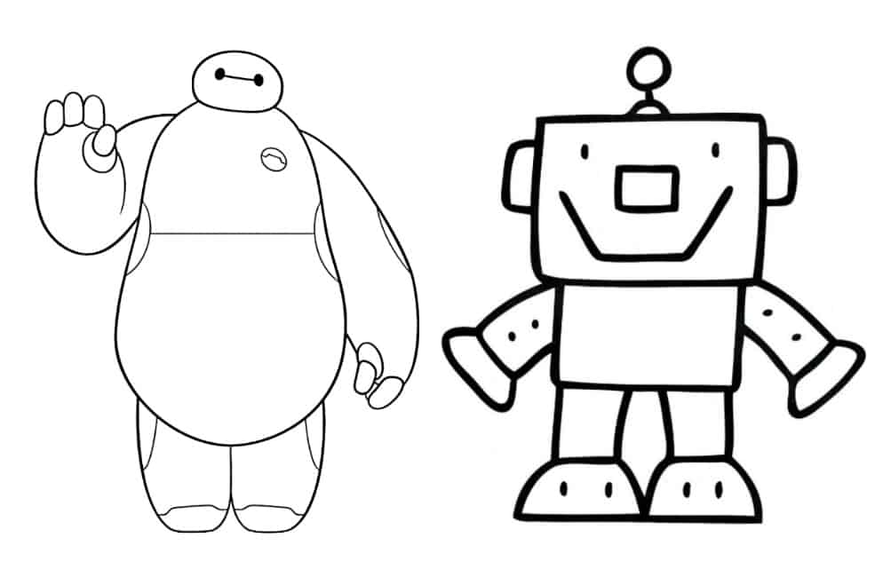 Бэймакс — добрый и веселый робот из м/ф «Город героев». А рядом будто инопланетный робот, может он прилетел с другой планеты в гости? Пусть малыш раскрасит любимыми цветами.