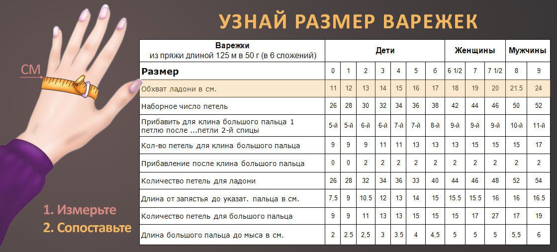 Как узнать, какой размер варежки мне нужен?
