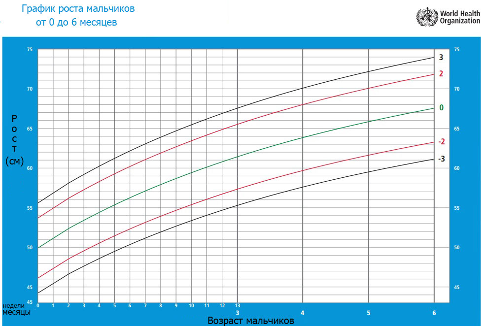 график роста мальчиков с рождения и до 6 месяцев по нормам ВОЗ