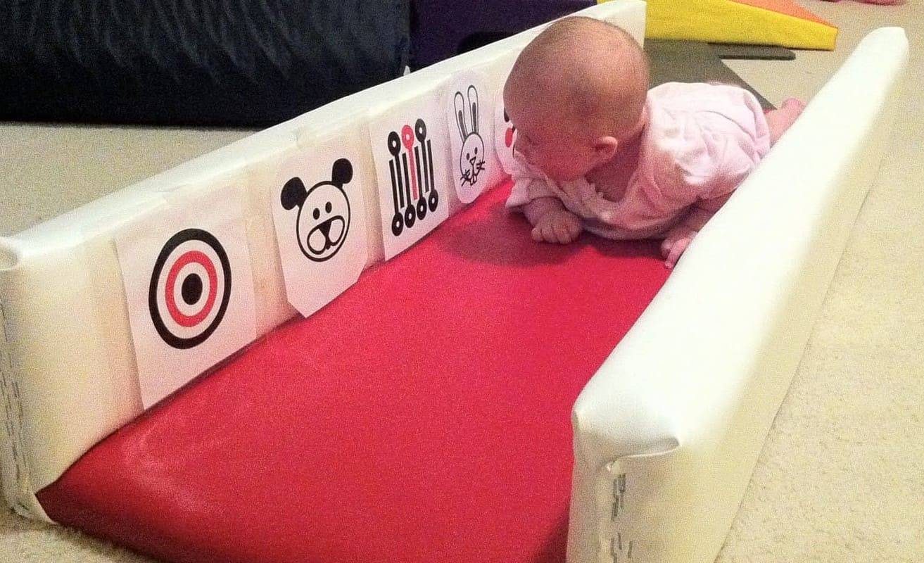 Помощь в освоении навыка может оказать и изобретенный американским врачом Гленом Доманом еще в 60-х годах прошлого века трек для ползания, представляющий из себя гладкий и в меру мягкий желоб с низкими бортиками, от которых ребенок отталкивается и начинает ползти. Трек может быть полезен как для здоровых детей, так и для детей с повреждениями мозга и отставанием в развитии, поскольку ползание способствует восстановлению многих функций организма. В первое время, для более легкого скольжения по треку, можно сделать небольшой наклон вниз с помощью специальной подставки или подручных средств. Увеличение двигательной активности при этом, лежание на животе будут способствовать отхождению газов естественным путём, уменьшая проблемы с животиком.
