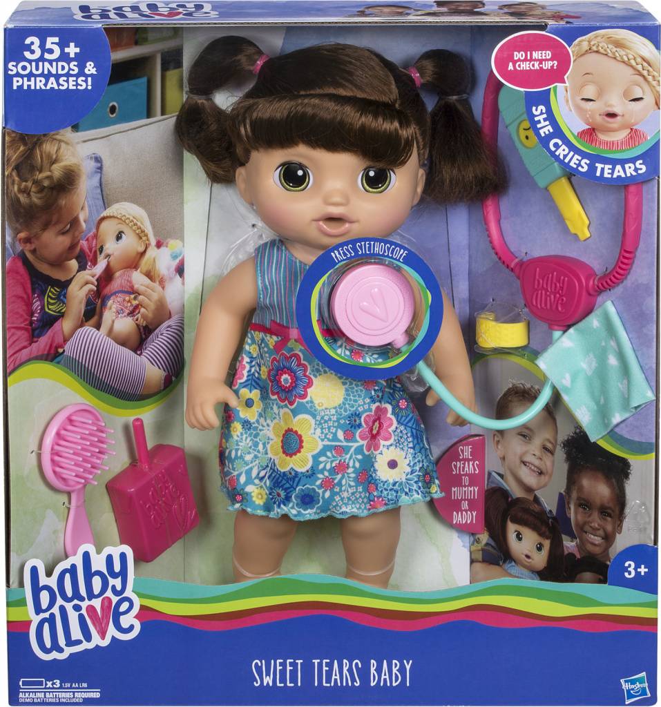 Покупатели выбирают игрушку за доступную цену, прелестный дизайн, многофункциональность. На наш взгляд, модель тяжеловата для трехлетнего ребенка. Весит она около 1,5 кг. Цена – примерно 1700 рублей. На сайтах популярных интернет магазинов товара в наличии нет. Придется постараться, чтобы найти Hasbro Baby Alive в продаже.