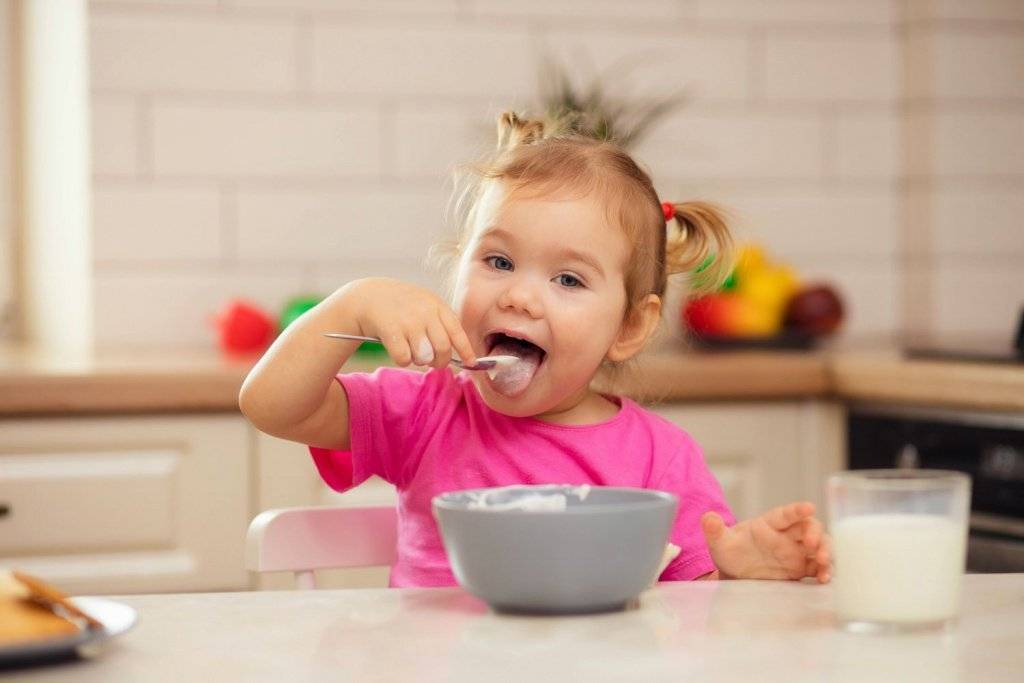 - Питание. Рацион ребенка на третьем году жизни становится все более разнообразным и во многом уже приближается к взрослому столу (конечно, в том случае, если семья придерживается принципов здорового питания). Режим дня для этого возраста предусматривает 4-разовое кормление с интервалом 3,5 – 4 часа (завтрак, обед, полдник и ужин). Некоторым детям бывает трудно выдержать столь длительные перерывы без еды. В этих случаях допустимы здоровые перекусы: стакан детского кефира или детский йогурт;