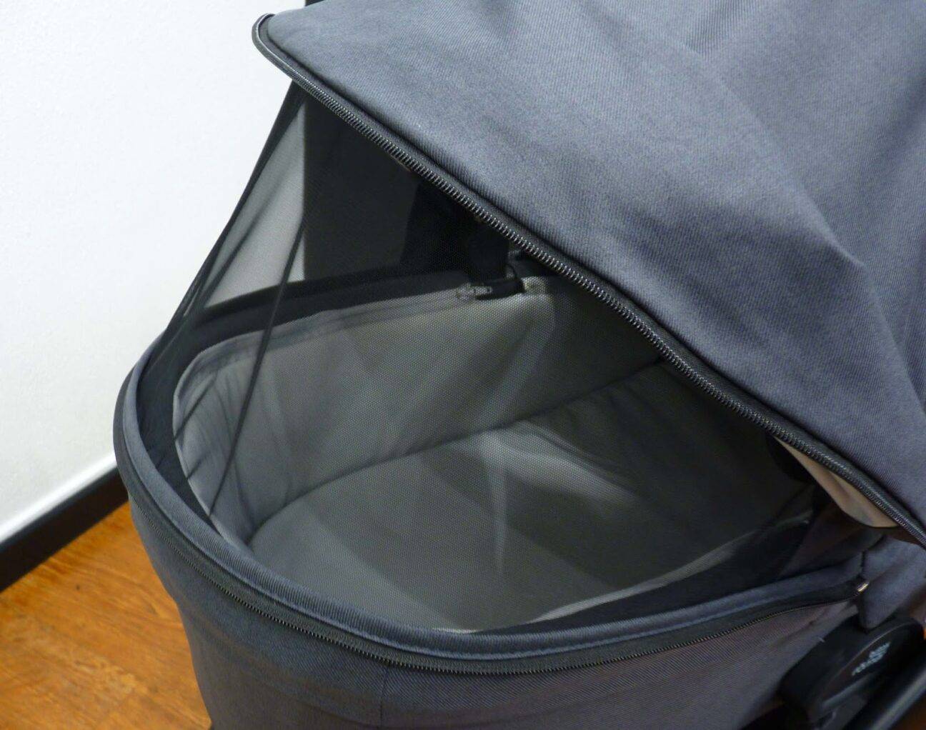 Важно посмотреть, чтобы задний клапан закрывал сетку внахлёст или фиксировался на липучки. Тогда малыша не продует. . Клапаны, закрывающие зоны проветривания на молнию и внахлёст