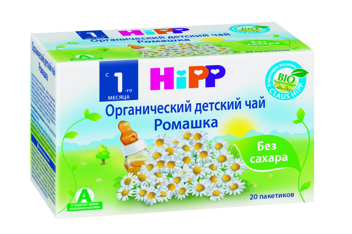 Среди производителей детских напитков популярен немецкий HiPP. Этот чай безвреден, его можно применять уже со второго месяца жизни малыша. В его составе: