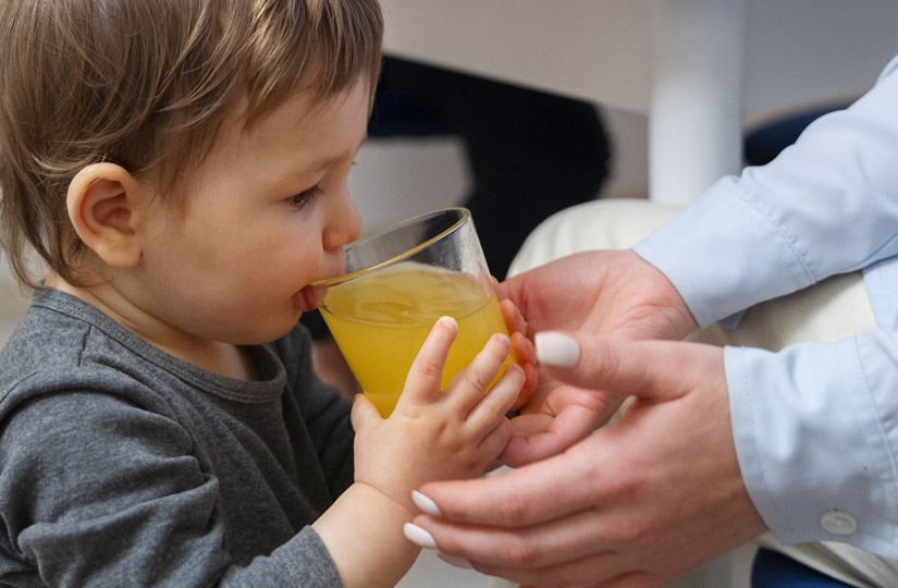 В младенческом возрасте начинать следует с 1–3 капель однокомпонентного сока без сахара. Если у ребенка нет признаков аллергии, постепенно можно увеличить количество напитка до 50 мл в день, при этом сок должен быть разбавлен водой в пропорции 1:1.