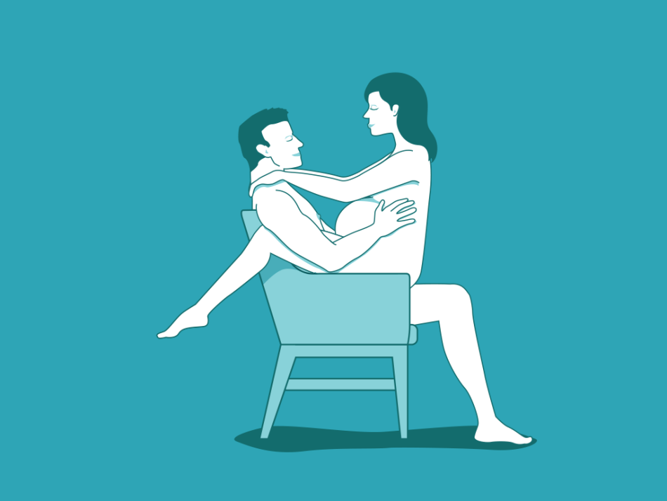 Поза хорошо подходит для беременных, потому что она снова позволяет тебе быть сверху, что не приводит к дополнительному давлению на живот. Чтобы занять это положение, оседлай своего возлюбленного, когда он сидит на прочном стуле (диван или широкое кресло тоже подойдут).
