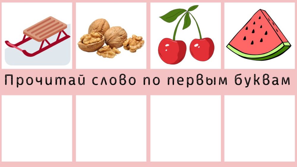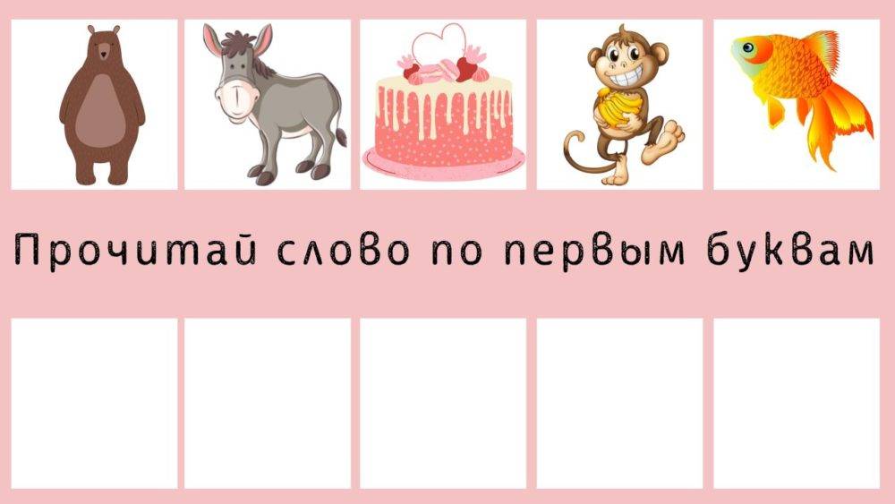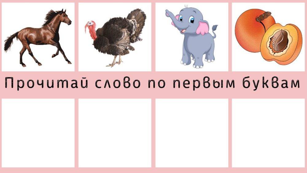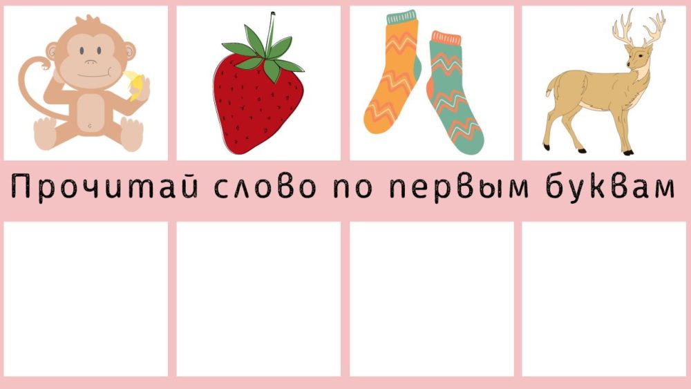 Пусть дошкольник сначала потренируется определять слова из 3-х букв. Когда он будет легко справляться с этим заданием, можно перейти ко 2-му этапу. Пусть воспитанник угадает слова из 4-х или 5-ти букв.