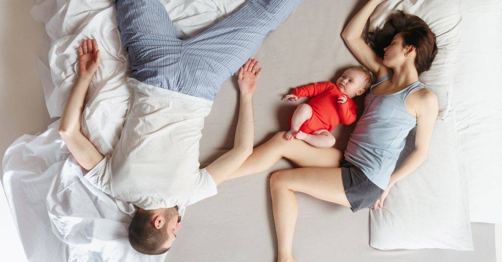 - Прежде всего, необходимо заручиться поддержкой и согласием супруга. Если муж не против подобного ночного отдыха, нужно правильно организовать спальное место и создать комфортные условия для всех участников «процесса».