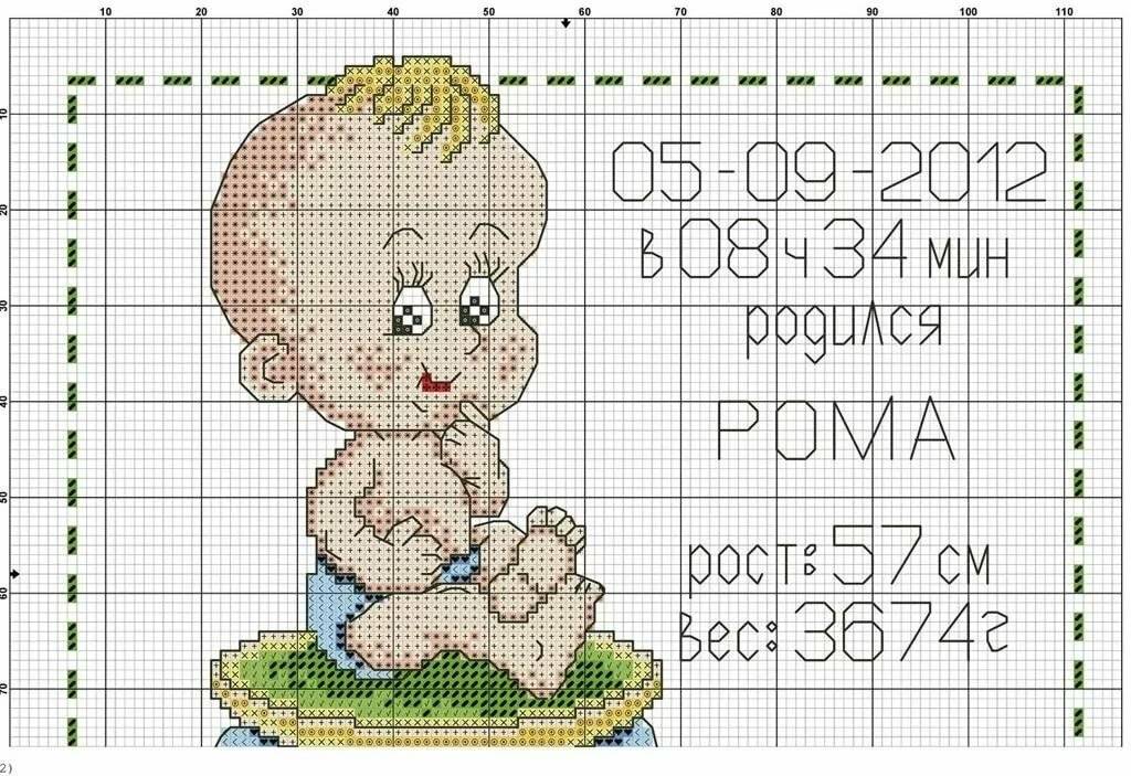Отличным вариантом является изготовление вышивки с указанием даты рождения ребенка