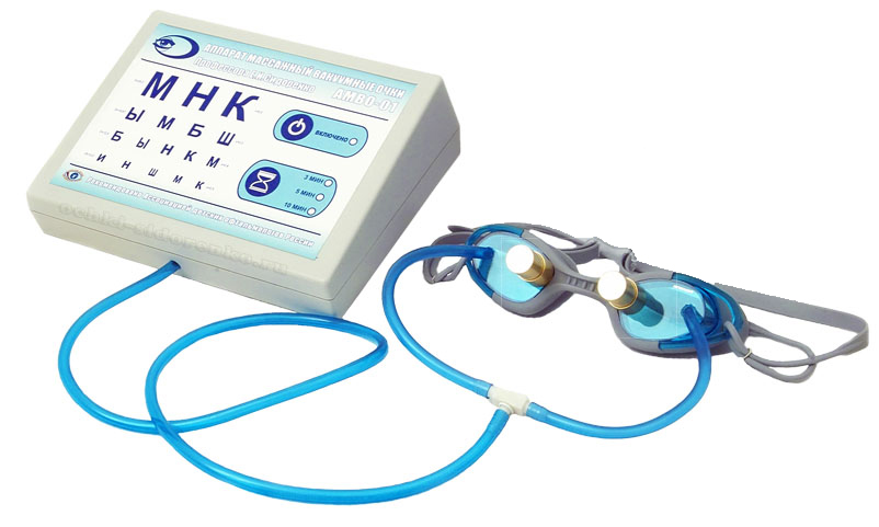 Это инновационный тренажер для глаз, который оказывает на них положительное действие посредством нежного вакуумного массажа. По внешнему виду он похож на очки пловцов, только изнутри линзы оснащены маленькими барокамерами, действующими по принципу мягкого массажа глаз вакуумом, с одновременным захватом окологлазных тканей. Очки излучают прерывистый свет различного спектра, что провоцирует сужение и расширение зрачка. Это помогает расслабить глазные мышцы.