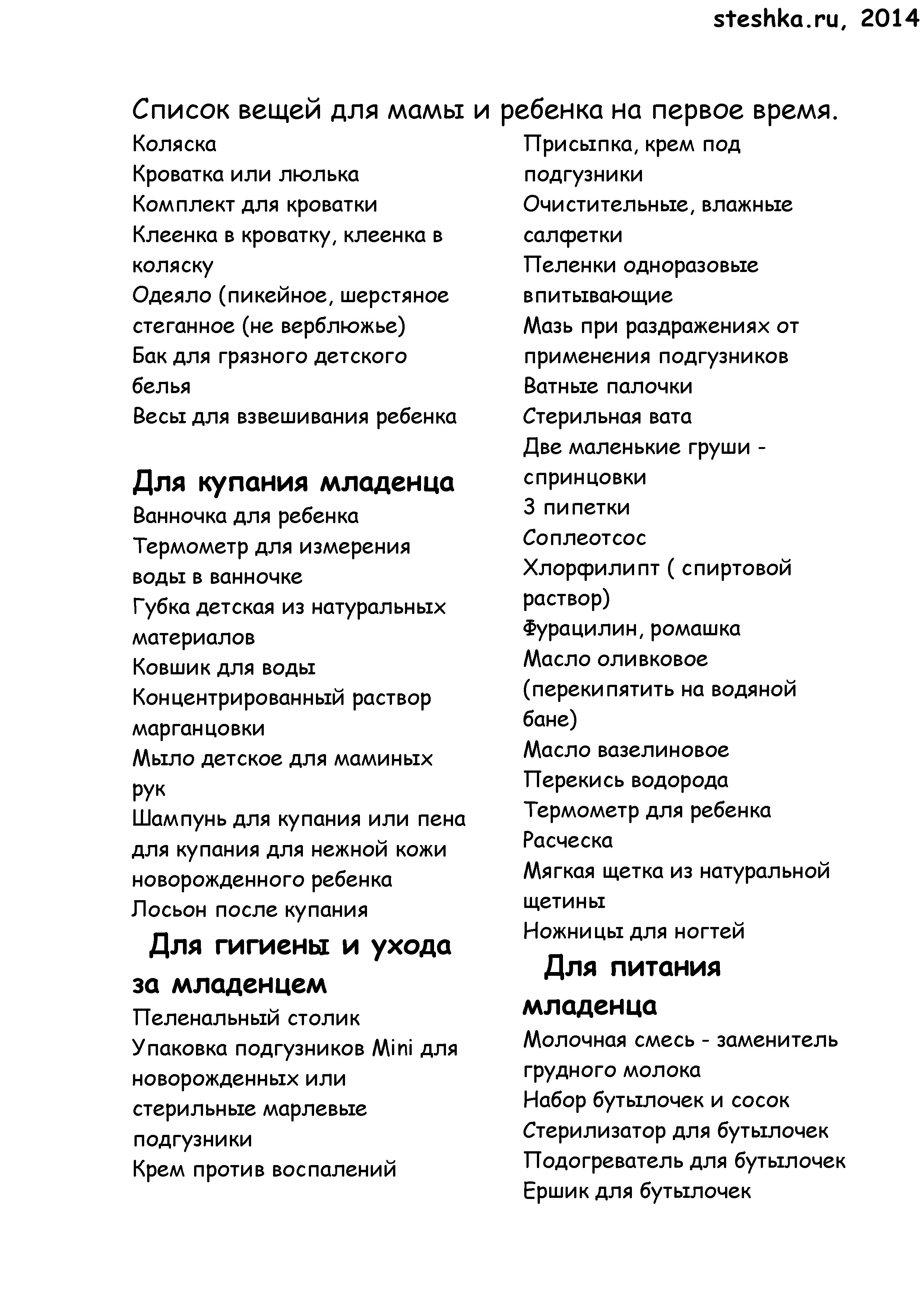 Вышеперечисленных вещей вам будет более чем достаточно на первое время. Или вы в этом сомневаетесь? Либо хотите предусмотреть все ситуации, с которыми вы столкнетесь после рождения младенца?