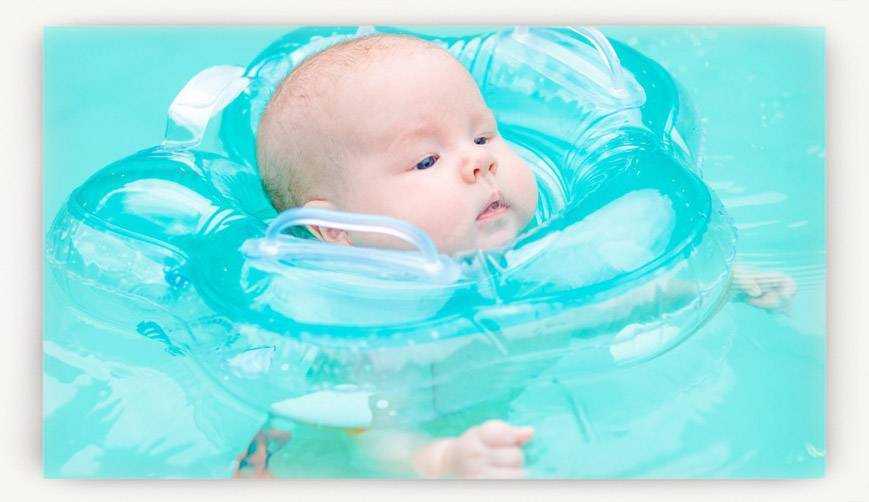 Круг для купания позволяет малышу свободно двигаться в воде.