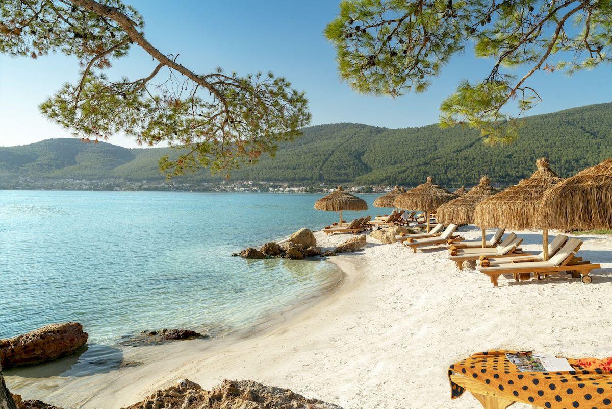 - Кристально чистая вода: Гладкие волны Эгейского моря здесь олицетворяют идеальную синеву, приглашая к освежающим погружениям.