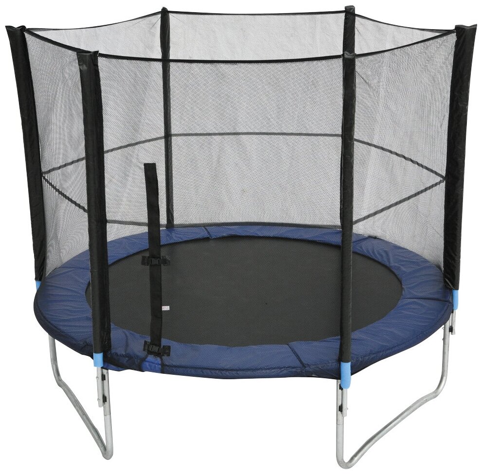 Представляет собой натянутое на раму полотно, вокруг каркаса проходит сетка. Благодаря ей он не травмоопасен. Высота составляет более 3 м, а диаметр батута с сеткой от 1,5 м до 2,5 м. Ниже представлены модели таких батутов.