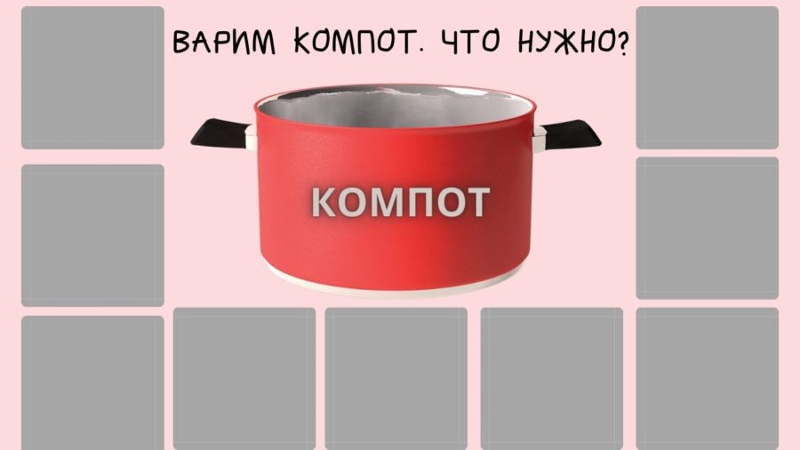 В начале этой игры педагог напоминает воспитанникам, что фрукты содержат много витаминов, из них получаются вкусные и полезные домашние заготовки и напитки. Далее воспитатель предлагает детям поработать поварами, раскладывает перед ними карточки, просит выбрать фрукты, из которых они приготовили бы компот, сок, варенье. Желательно, чтобы дошкольники в процессе выбора четко проговаривали название пищи. Например: варенье из сливы — сливовое варенье, сок из апельсина — апельсиновый сок, компот из яблок — яблочный компот.