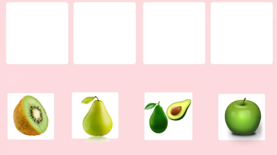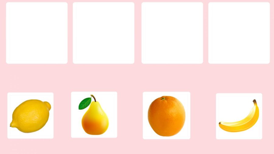 Воспитатель раскладывает картинки в несколько ровных рядов. Затем обращается к каждому воспитаннику по очереди, просит назвать соседей определенного фрукта. Например, он называет яблоко. Дети выискивают среди картинок плод, затем говорят, что находится справа, слева, сверху, снизу.