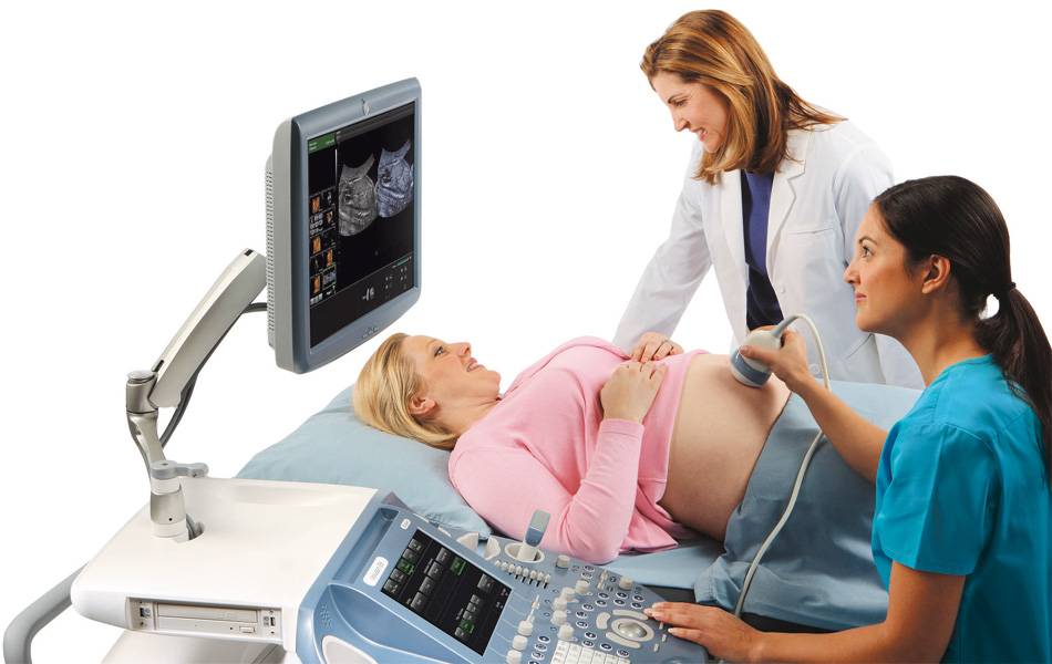 После того, как дама устроится на кушетке, врач смажет ее живот гелем для УЗИ и разместит на нем датчик-трансдюссер, считывающий информацию о беременности с помощью ультразвуковых волн.