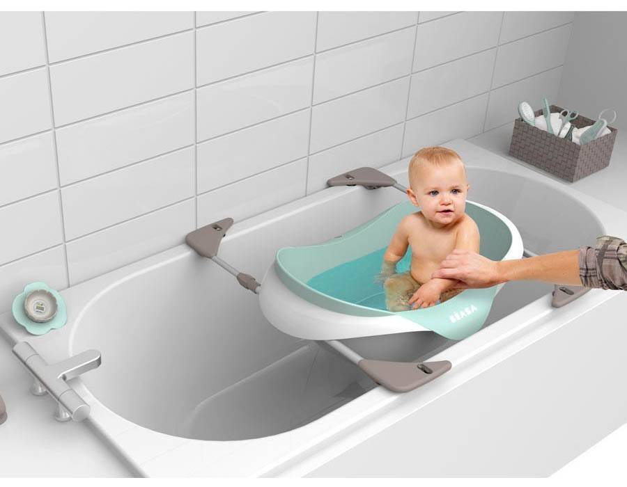 - Bagnotime от Brevi – целая система для купания, укомплектованная подставкой и пеленальным столиком. Металлические крепления регулируются по ширине, что делает модель универсальной – она легко устанавливается на любые ванны.