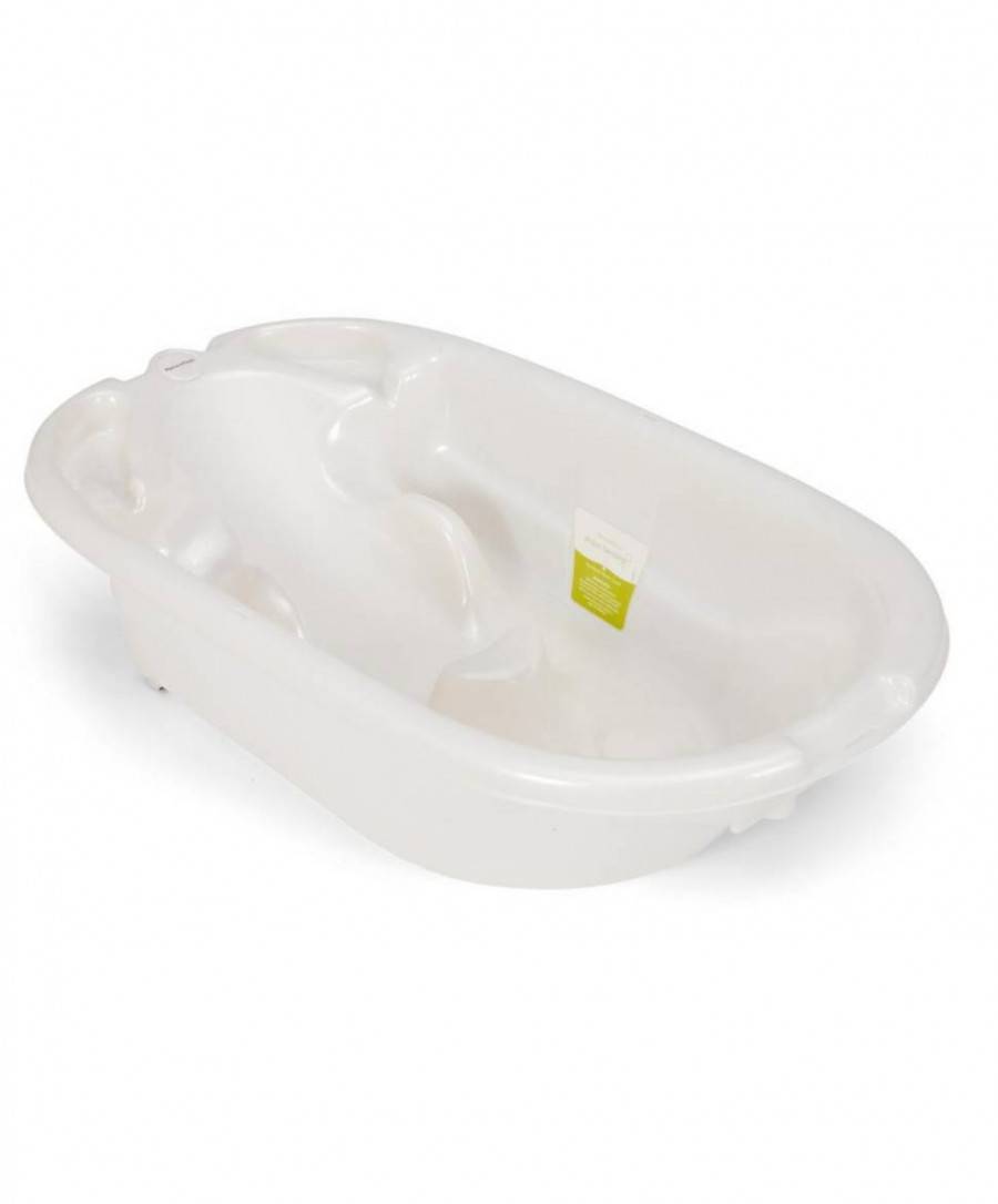 Детский аксессуар из пластика имеет стандартную форму снаружи и двойные стенки, за счет чего набранная горячая вода долго не остывает. Для новорожденных дополнительно в набор включен специальный лежак на широких ножках, который для комфорта помещается непосредственно в ванну. Мягкий подголовник позволяет правильно разместить ребенка, не причиняя ему неудобств. Еще одна полезная опция – съемный блок с душем. Никелированная ручка проста в управлении, льющаяся неширокая струя дает возможность аккуратно, не перемещая карапуза, смыть с него пену. Эргономичный блок впоследствии можно переставить на обычную ванну.
