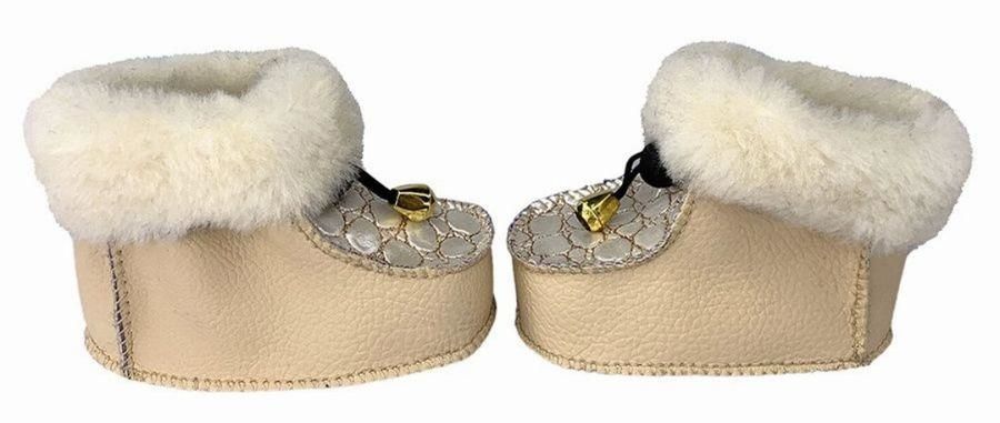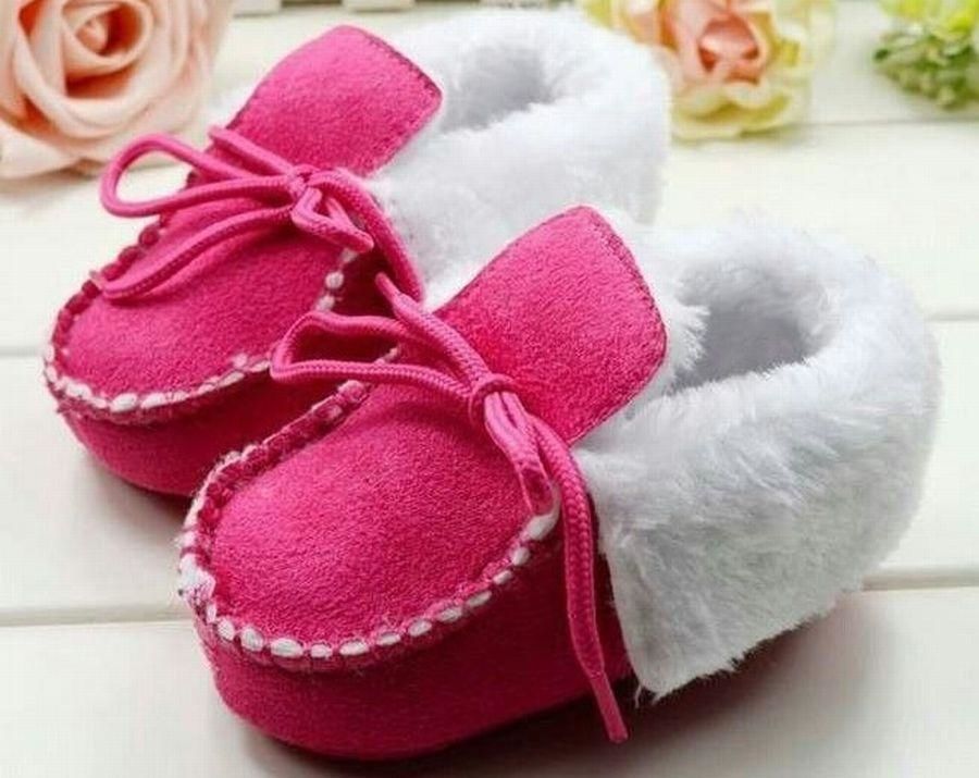 Для изготовления меховых пинеток хорошо подойдет замша. Такие ботиночки надежно фиксируются на ножке с помощью шнуровки. Модель универсальна – с учетом цветовых предпочтений подходит и девочкам, и мальчикам.